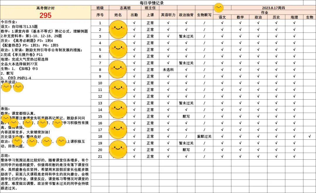 班主任定期向家长做反馈,一般采取以下形式:面对面、电话、微信、每日班级群学情反馈表、个性化学员沟通记录、谈心记录等,便于家长随时了解学生在校情况。