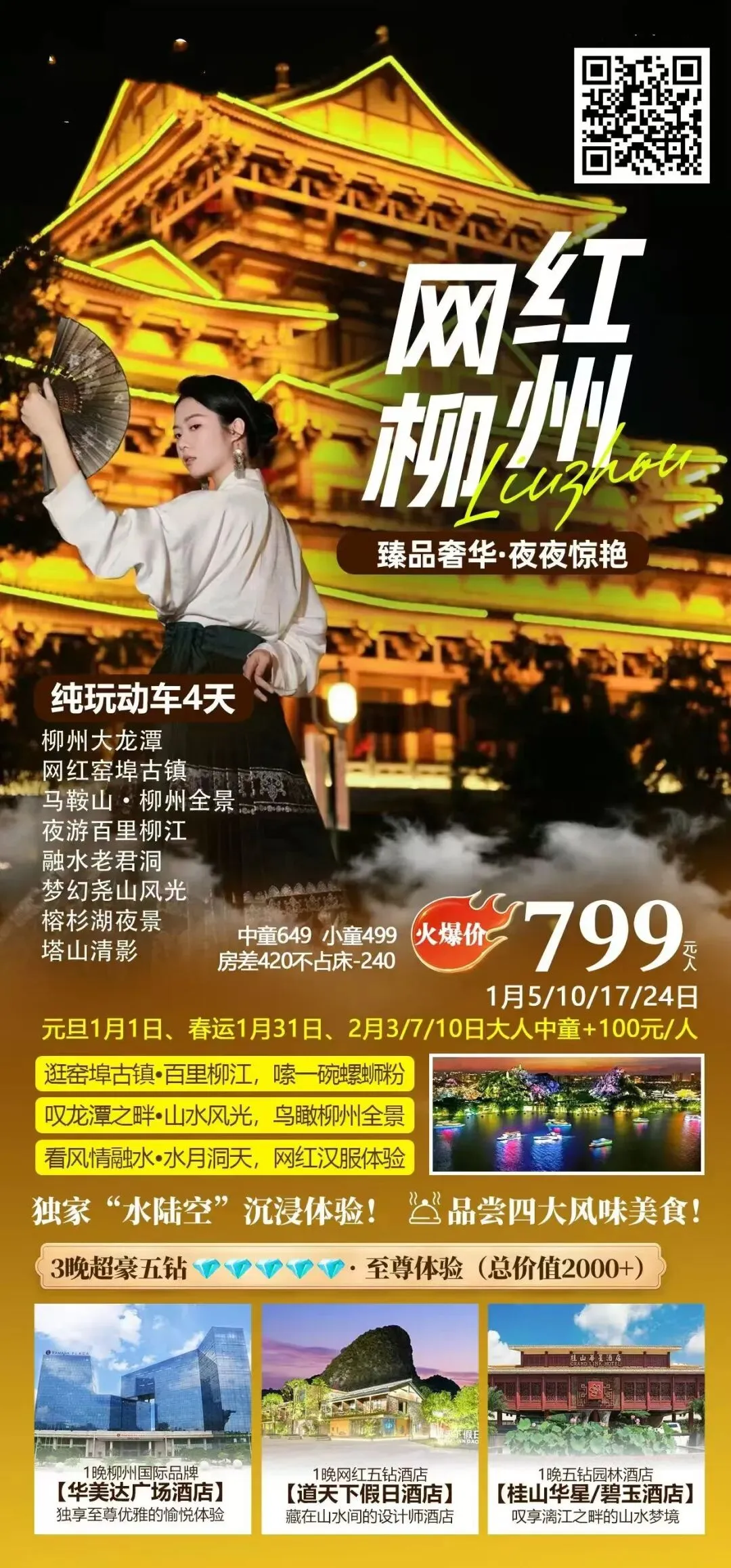 【网红柳州.爆款纯玩】世界螺蛳粉之都!360°深度游玩,品地道美食,壕叹3晚超豪酒店!住进醉美风景.尊享汉服体验