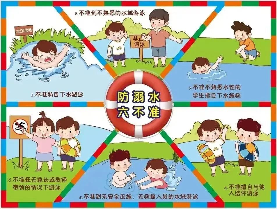 家长需严禁孩子前往水库、河流、湖泊、池塘等野外水域玩耍,孩子外出时务必做到“四知道”,即清楚孩子的去向、活动内容、同伴情况及归返时间。同时,要切实教育孩子牢记“六不两会”:不私自下水游泳、不擅自与他人结伴游泳、不在无家长或教师带领时游泳、不到无安全设施和救援人员的水域游泳、不到不熟悉的水域游泳、不熟悉水性的学生不擅自下水施救;发生险情时会相互提醒、劝阻并报告,会基本的应急自救、求助和报警方法。还要让孩子明白,一旦发现有人溺水,应及时寻求成人帮助,切勿盲目下水施救。