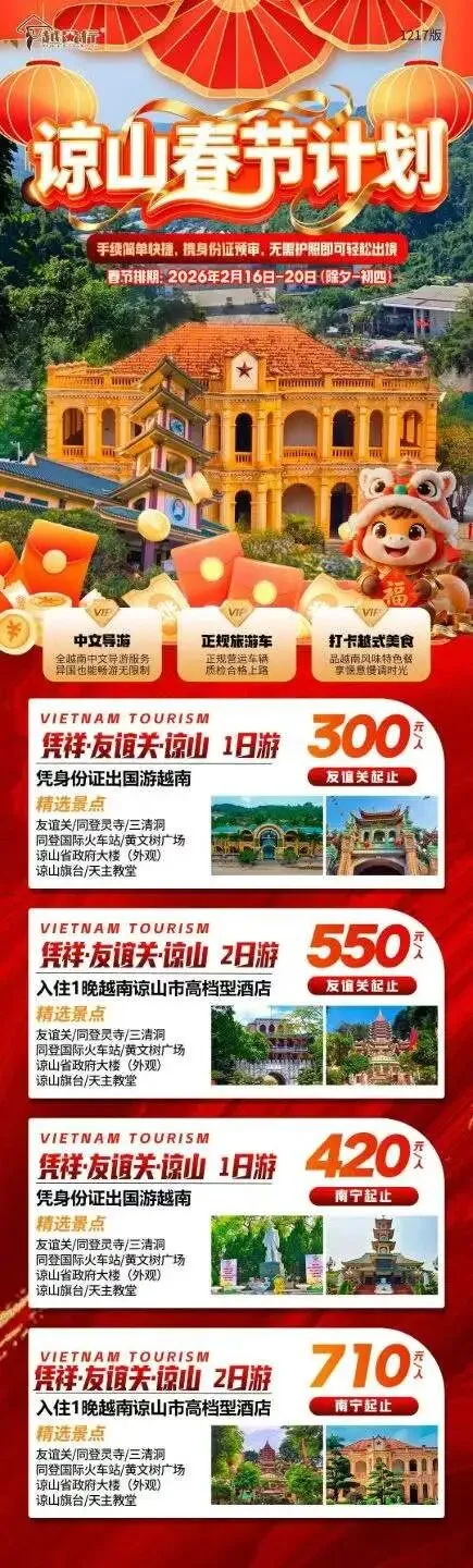 春节计划已出→越南谅山1-2日游 南宁/凭祥起止 天天发团