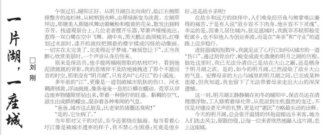 今天的明月湖,总会张开温情的怀抱迎接远乡来客,她为人们洗去风尘,驱散彷徨,让每一位来者欣然地融入这片湖,恋上这座城。(2026年1月23日在《广西民族报》发表)