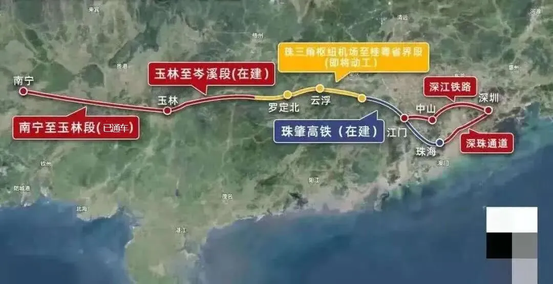 深南高铁位于广东省和广西壮族自治区境内,东起广东省深圳市,西至广西首府南宁市,是粤港澳大湾区快速通往西南地区的高速铁路新通道。
