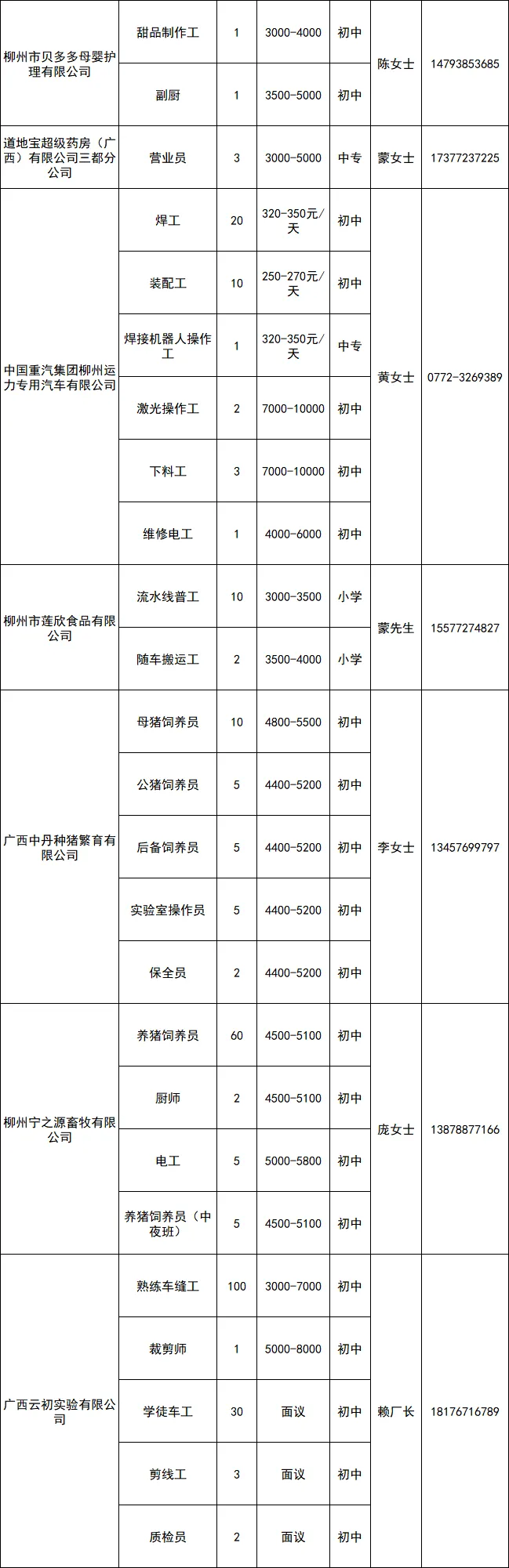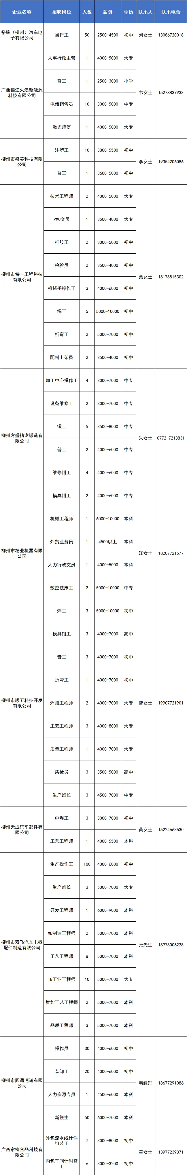 月薪最高上万元!招聘800多人!柳州26家企业发布最新用工需求