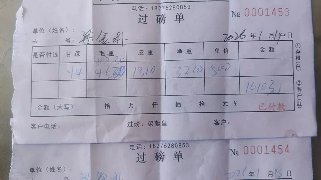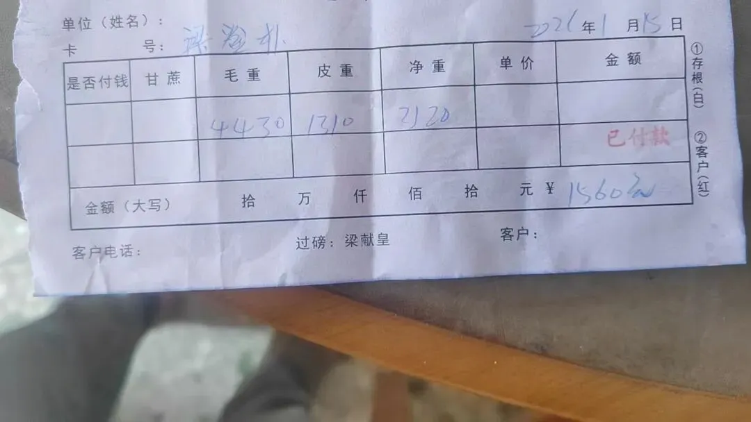 柳州测产燃爆了!7分地实际过磅9.35吨!折合亩产13吨+!和村2026年1月15日桂糖44号测产,用实打实的产量刷新碧路测产的纪录。