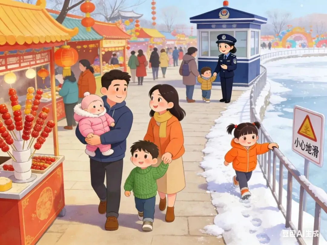 寒假佳节,出行增多,为守护孩子安全,温馨提醒您做好外出安全防护:①人多场所看好孩子,不拥挤、不远离家长,教会孩子走失后找警察、工作人员求助。②冰雪、湿滑路面慢走,避免追逐打闹防摔倒。③不让孩子接触陌生人物品,不跟陌生人交谈、随行。愿宝贝们度过一个平安、快乐的假期。