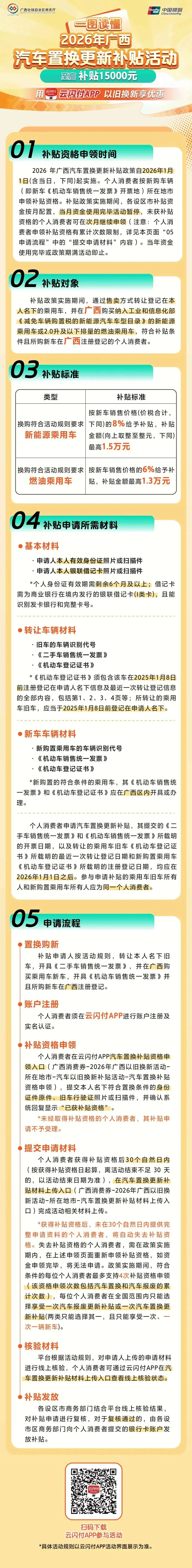 旧车补贴范围在2025年政策范围基础上延扩1年。符合条件的汽油乘用车旧车范围从2012年6月30日前扩至2013年6月30日前,柴油及其他燃料乘用车从2014年6月30日前扩至2015年6月30日前,新能源乘用车从2018年12月31日前扩至2019年12月31日前。