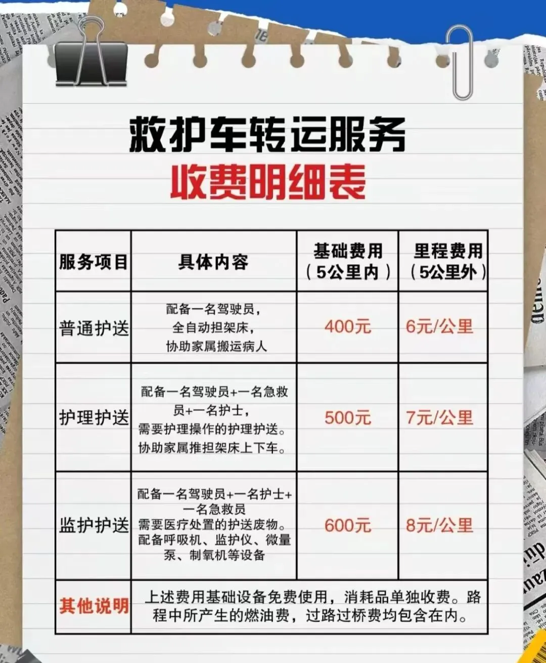 • 透明合理收费:清晰的价格体系,无隐藏费用,根据转运距离、医疗需求提供个性化方案。