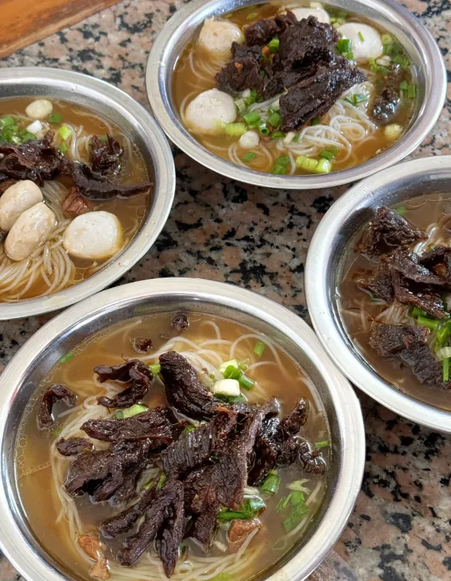 牛肉切得厚,不柴;汤不油,喝得出骨香。
