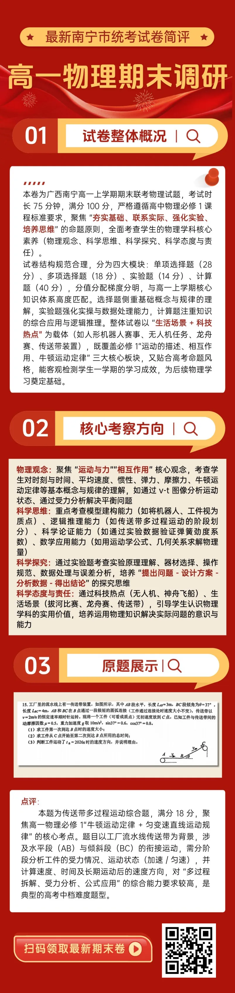 >南宁高一秋季期末统考丨物理最新试卷简析来咯!