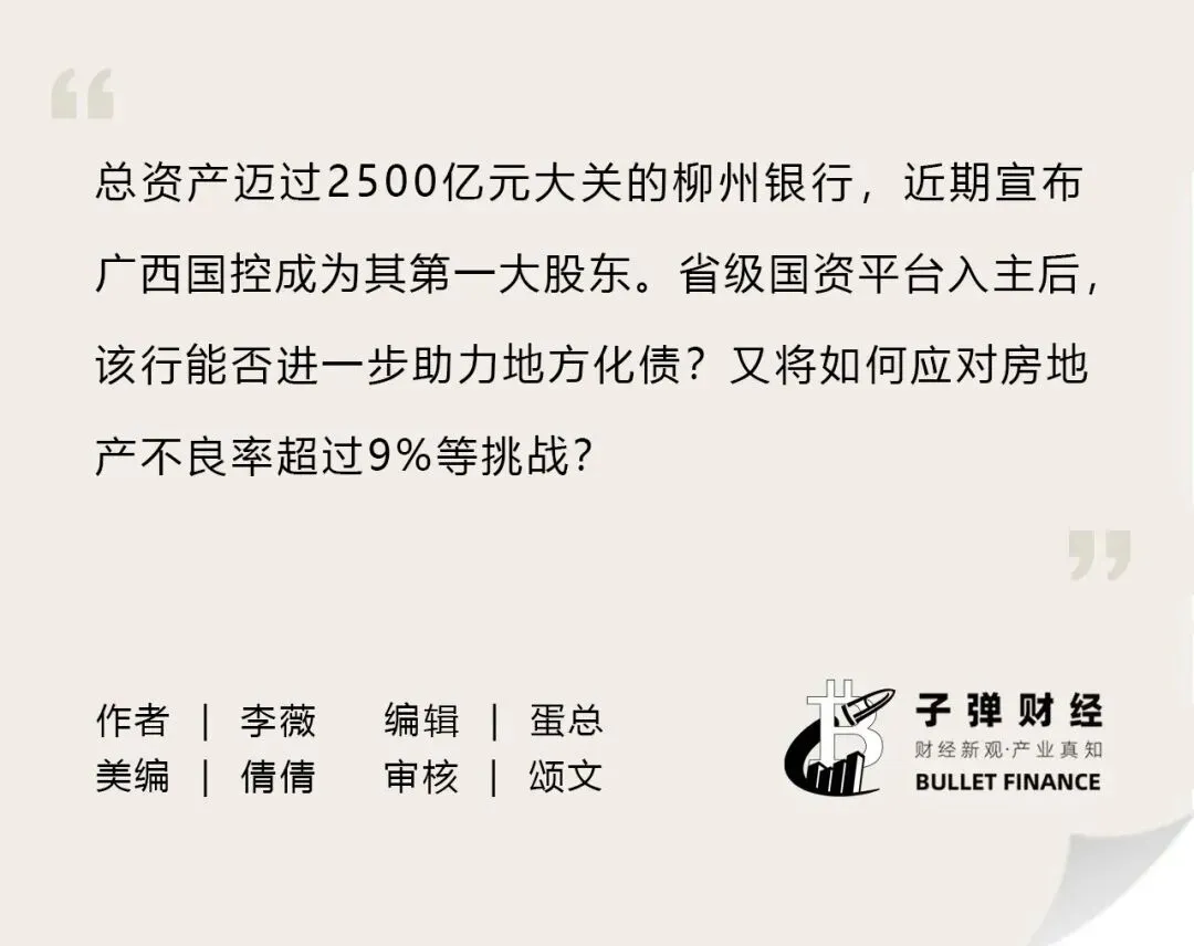 总资产规模超过2500亿元的柳州银行,由省级国资平台作为该行新的控股股东后,未来能否对接政府主导的重大项目并驱动自身战略变革?在业绩表现和公司治理层面,如何展现出省级城商行的竞争优势?「子弹财经」将持续观察。