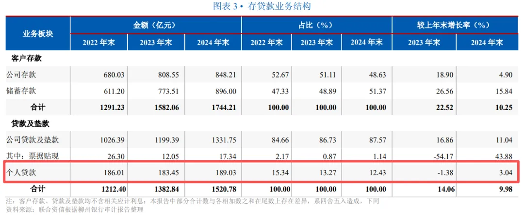 图 / 柳州银行的存贷款业务结构(来源:联合资信评级报告)