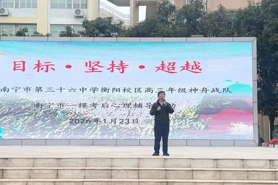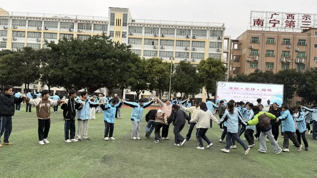 为帮助高三学子释放备考压力,凝聚奋进力量,1月23日下午,南宁市第三十六中学衡阳校区在田径场举办了以“目标·坚持·超越”为主题的一模考后心理辅导活动。高三全体师生共同参与了这场别开生面的减压之旅。