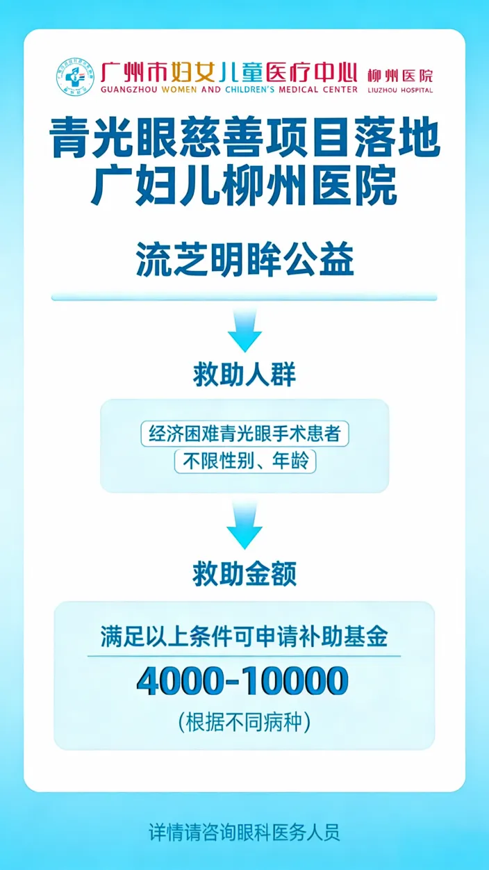 为切实解决家庭困难青光眼患者“看病贵”难题,助力患者及时获得规范诊疗,广州市妇女儿童医疗中心柳州医院正式成为四川天府新区慈善会“流芝明眸公益慈善基金”定点医院,启动青光眼公益救助项目,为符合条件的困难患者提供手术费用补贴,以专业医疗赋能公益,守护群众的眼健康。