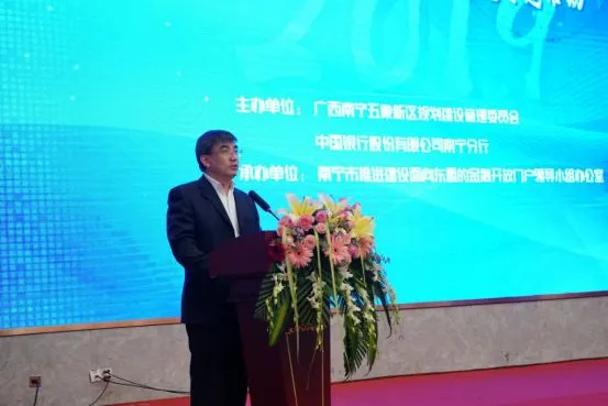 南宁五象新区规划建设管理委员会财政局局长、南宁市推进建设面向东盟的金融开放门户领导小组办公室主任阳强作活动致辞
