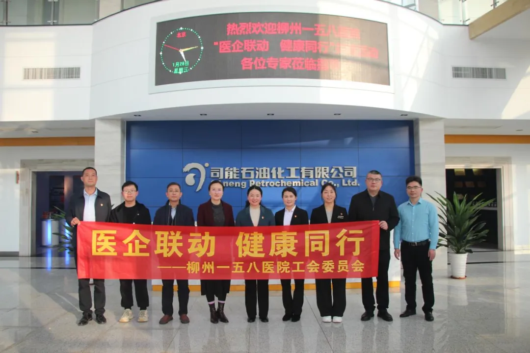 为深化医企合作,赋能职工健康,1月28日下午,柳州一五八医院党支部副书记钱立蓉、工会主席孙艳双及医护专家七人前往司能石油化工有限公司成功举办“医企联动 健康同行”工会共建活动。司能石油化工有限公司生产总监兼行政总监汪健、工会主席彭芬及部分职工共同参与活动。