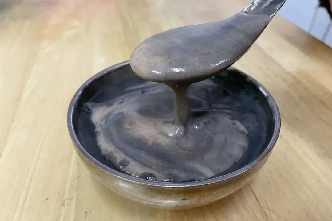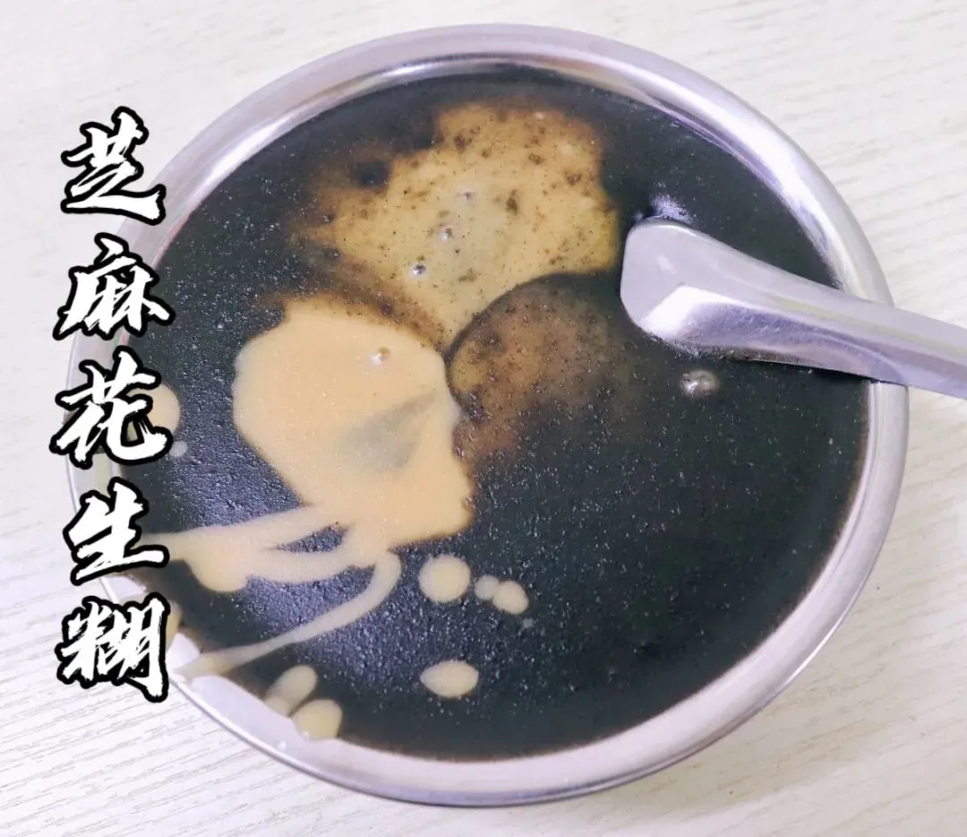 店里的C位,必须是芝麻糊拼花生糊,这可是柳州人吃芝麻糊的灵魂吃法!老板会先把绵密的花生糊铺在碗底,再舀上醇厚的黑芝麻糊盖顶,米黄色悄悄藏在墨黑底下,看着简简单单,可勺子从碗底一舀,两种颜色缠缠绵绵搅在一起,像幅温柔的水墨小画,颜值口感双在线!
