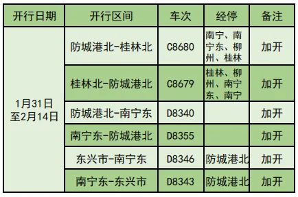 南宁东—防城港北 D8355东兴市—南宁东 D8346