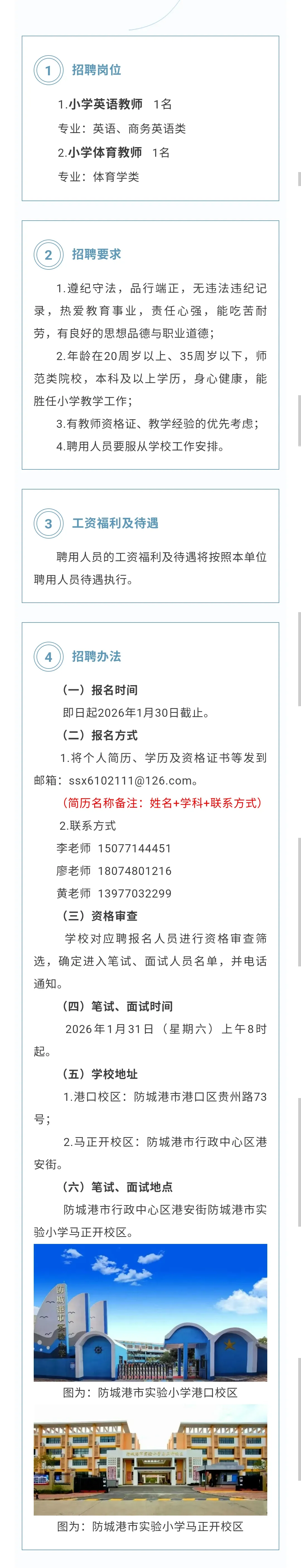 防城港教师招聘:防城港实验小学招聘