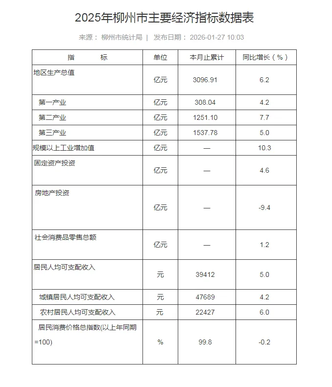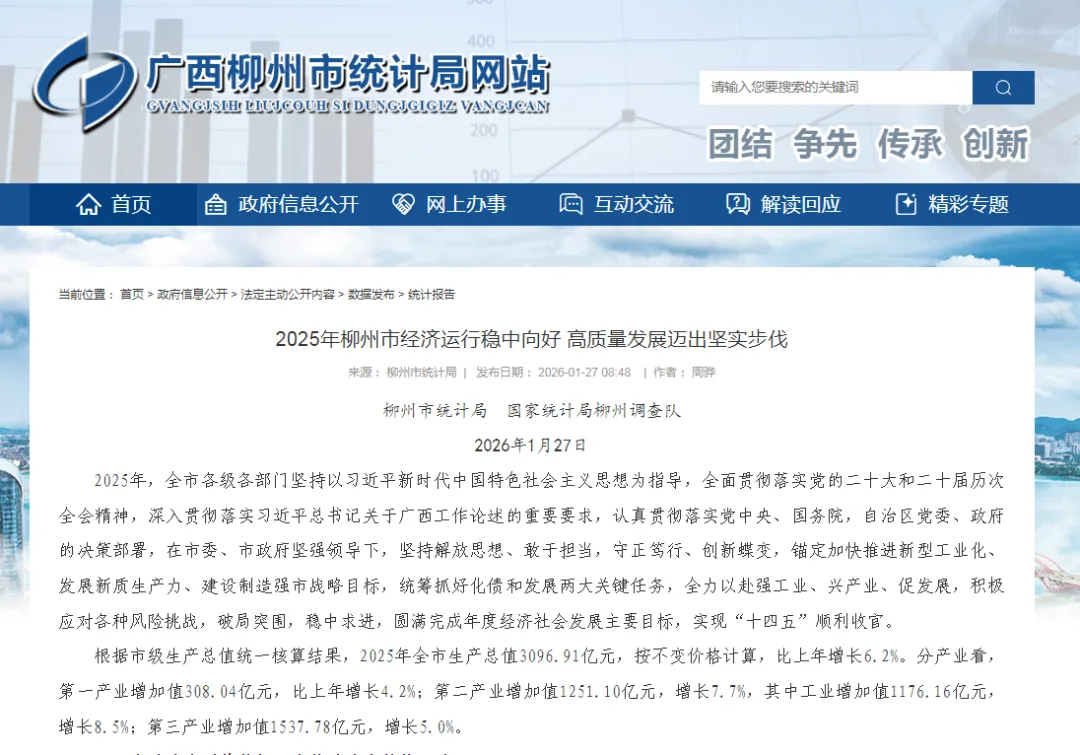 信息来源: 柳州市统计局、柳州市政府网站等,转载请注明出处;