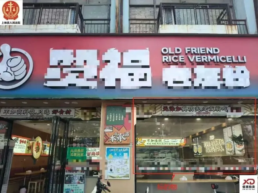 此次拍卖的商铺是一宗位于南宁市江南区亭洪路商业1号10+1商业大道1号楼一层1-9号商铺,该商铺面积不算小,建筑面积为74.64平方米,目前商铺出租给别人开了一家老友粉店。商铺存在一个瑕疵,那就是商铺已经与隔壁一间商铺相互打通成为一个整体用来开粉店。