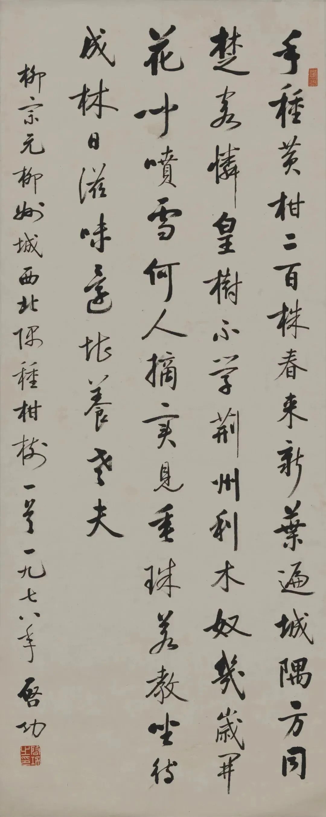 启功先生录柳宗元诗《柳州城西北隅种柑树》。图源:柳州博物馆