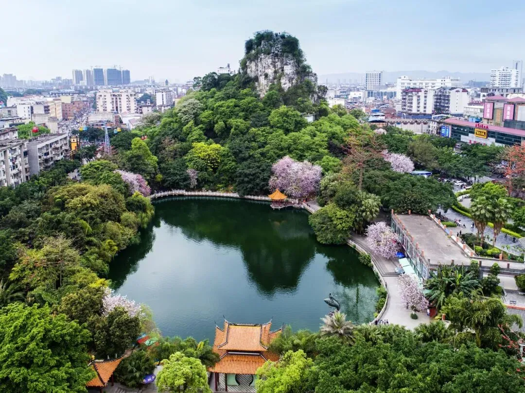 “雷山两崖皆东面,雷水出焉”,柳宗元在《柳州山水近治可游者记》中记载的雷潭,如今仍是龙潭公园的核心盛景。