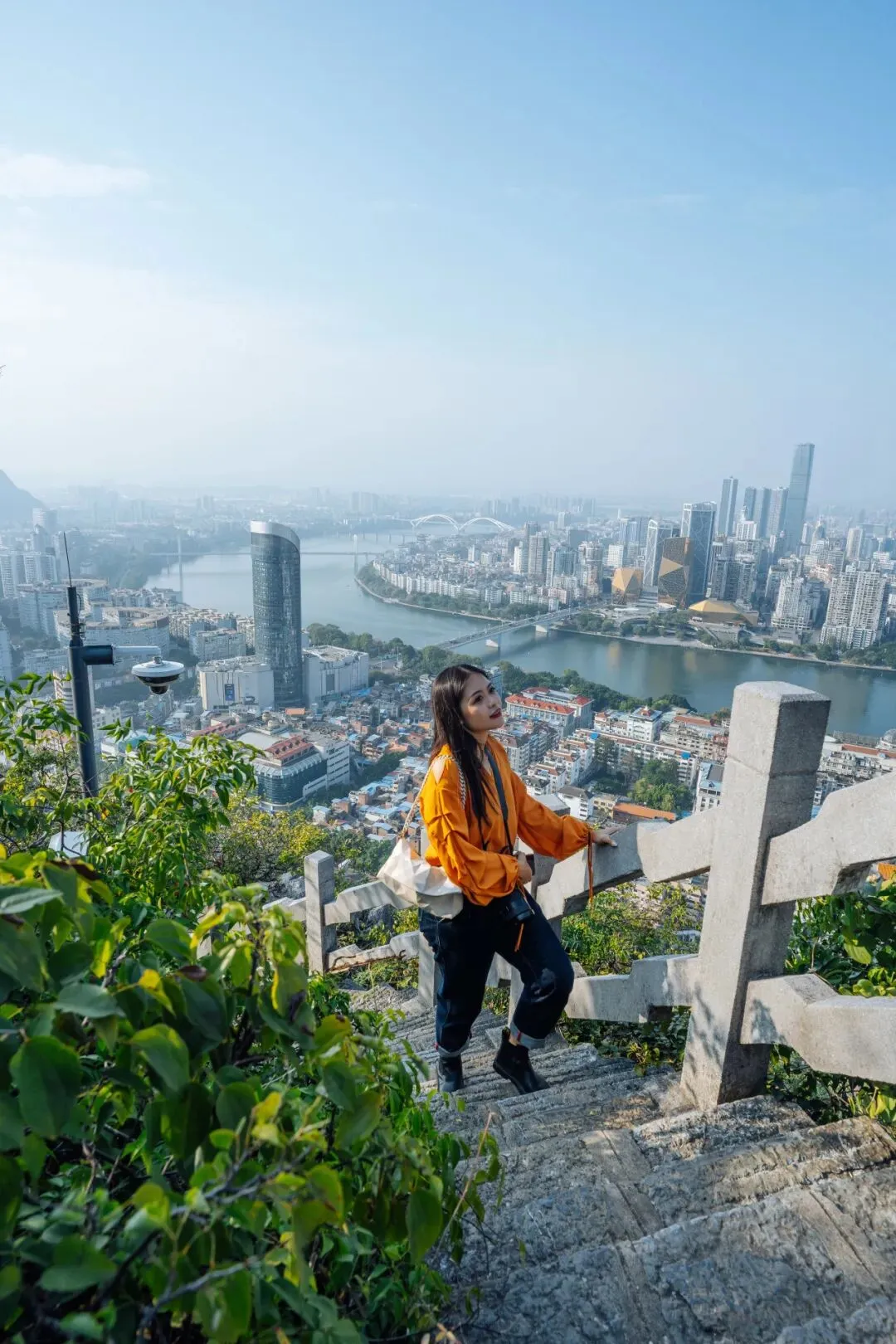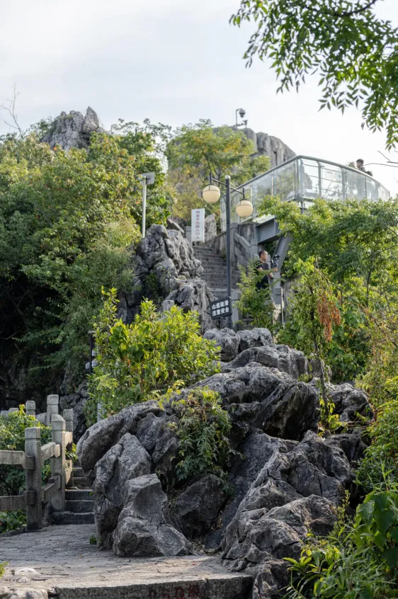 “驾鹤晴岚”是柳州古八景之首,柳宗元曾登临此山俯瞰柳江,挥毫写下山水诗篇。登山步道旁的摩崖石刻依稀可辨,山顶观景台远眺,江风裹挟着草木清香,让人心生“独上意悠悠”的悠远意境。