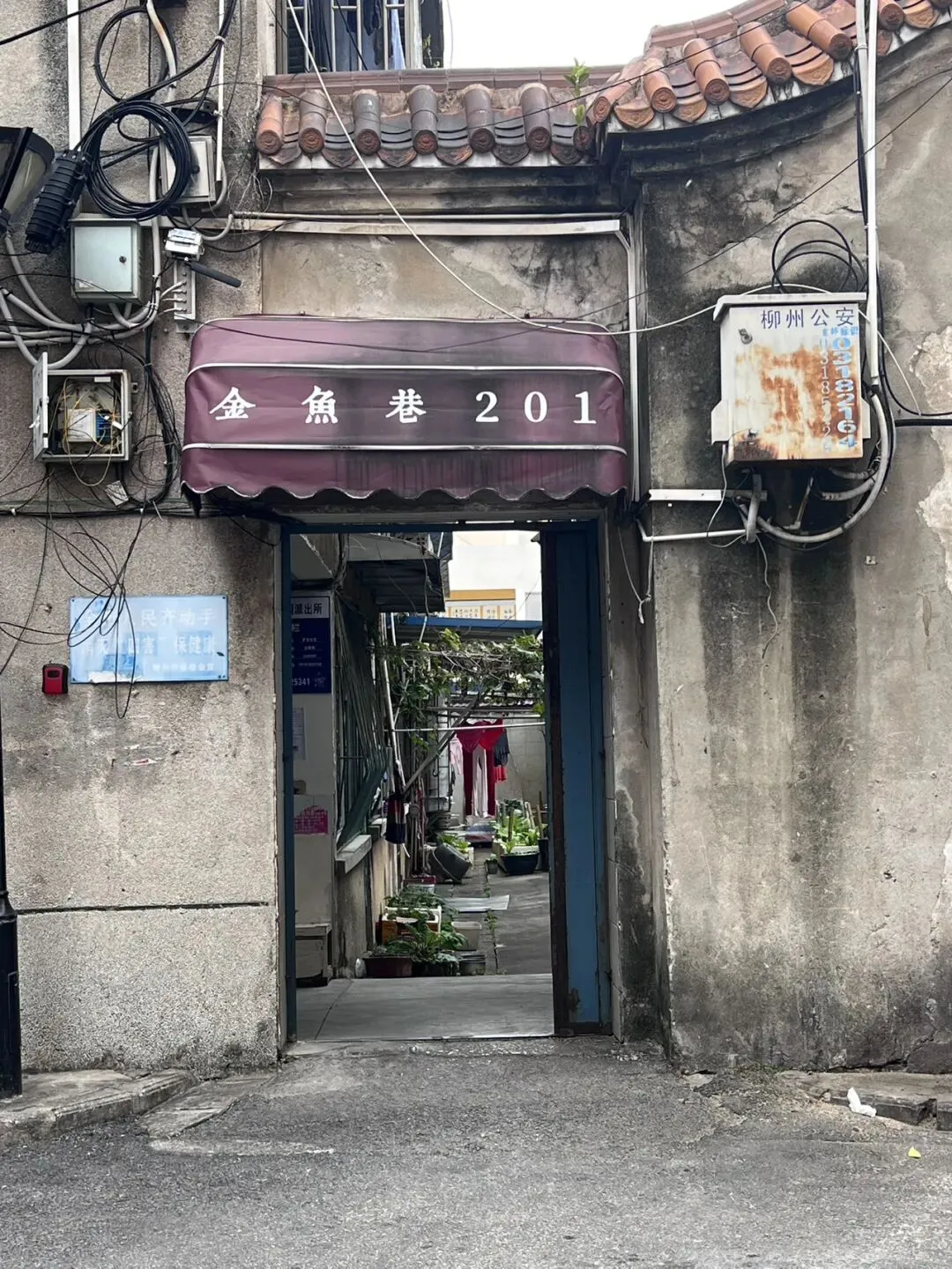 除了逛吃,金鱼巷的文艺打卡点同样不容错过,随手一拍就是氛围感大片。巷内的金鱼巷 201,是老巷里极具故事感的打卡地标。这里曾是老城老式民居,斑驳墙面留存着数十年岁月痕迹,改造后保留复古门头与老建筑肌理,无过度翻新的刻意感,自带怀旧滤镜,复古氛围拉满,是打卡老柳州烟火记忆的必拍点位。