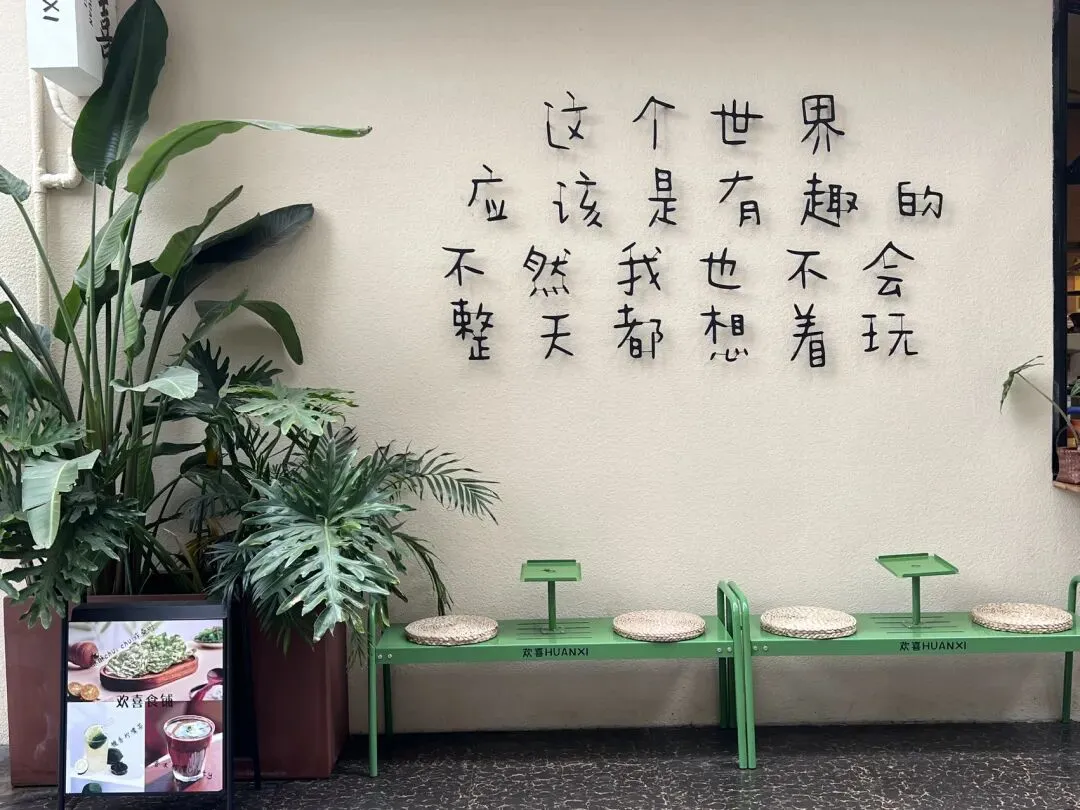 各大特色店铺也藏着满分拍照机位。此刻咖啡、欢喜食铺是文艺青年首选,温馨原木风搭配绿植与萌宠,复古灯具、手绘菜单都是绝佳道具。靠窗手持甘蔗美式,借自然光拍清新探店照;店门口简约窗沿与招牌,拍全身街景简约高级。