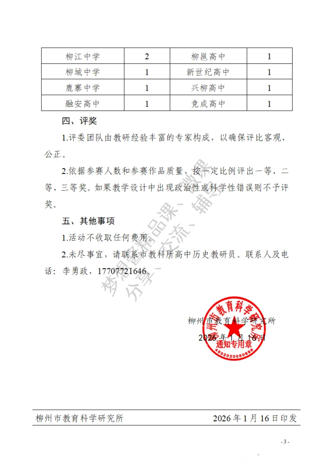 柳州市开展“高中历史学科统编教材精品课例评比活动”的通知