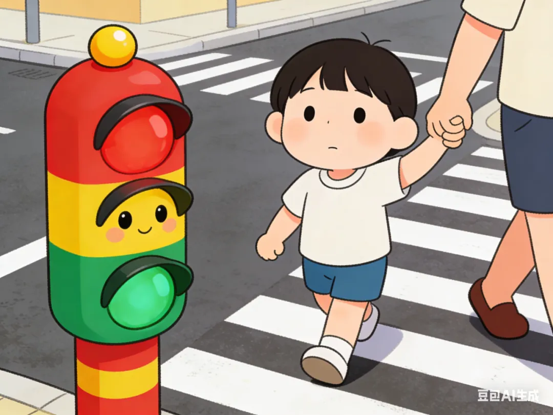 1. 交通安全:过马路牵紧大人手,走斑马线看红绿灯,不追逐奔跑。