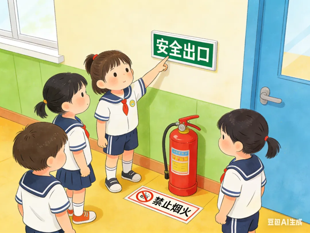 3. 认清安全标识:认识火警、安全出口、疏散通道的标志,不占用、不遮挡安全通道。