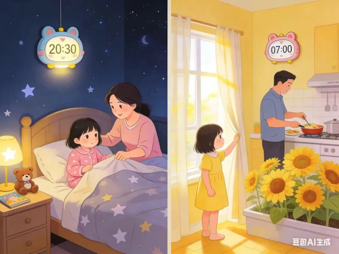 保持和幼儿园一样的作息,早睡早起,不熬夜、不赖床。