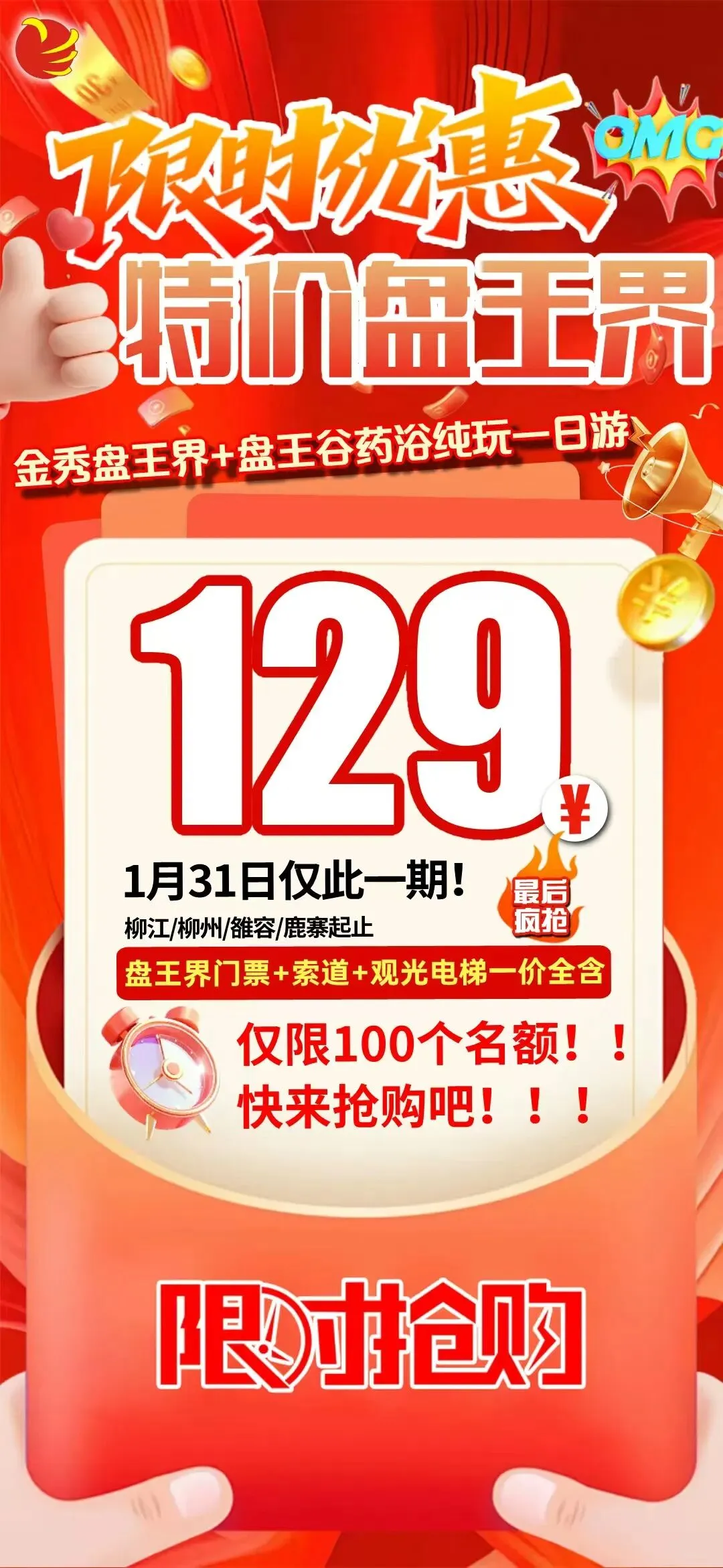 1🈷️31日(已经成团,有位)金秀盘王界➕盘王谷泡药浴温泉一日游129元/人