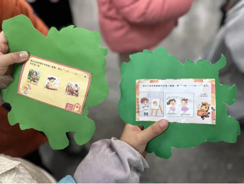 妙语连珠小话筒:以词语为种子,孩子们充分发挥想象与创意,将随机抽取的词语巧妙串联成通顺的句子、生动的片段,或描述画面、或讲述小故事,展现了丰富的语言组织能力与表达天赋。