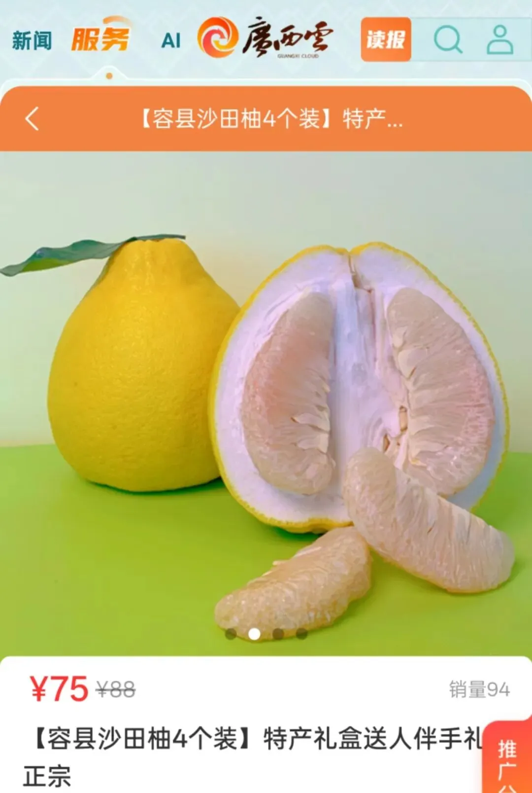 近日爆款好物广西容县沙田柚继续热卖中,低酸无渣、果肉晶莹剔透,老树果甜糯甘美。
