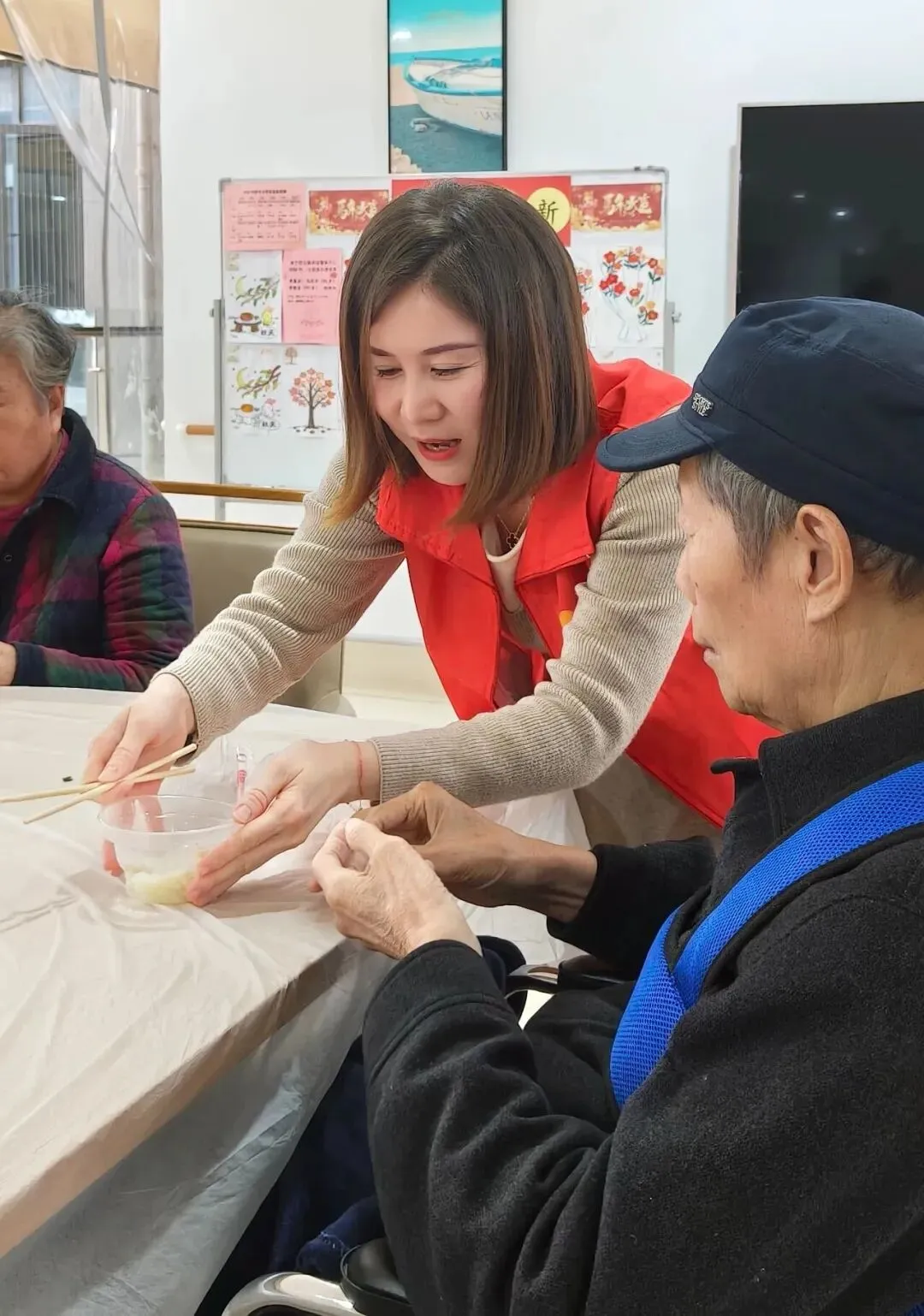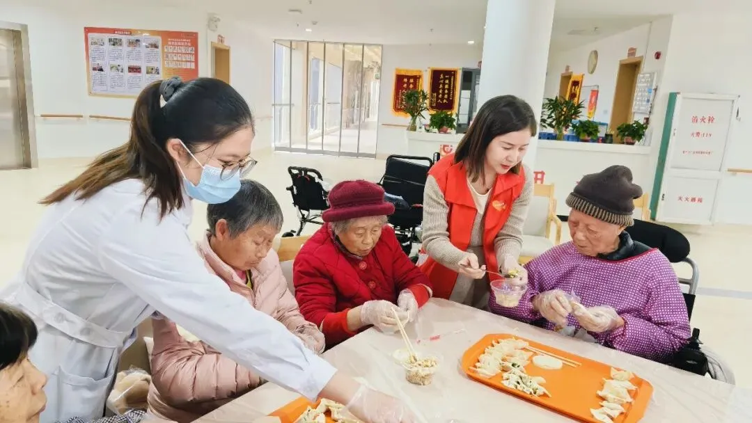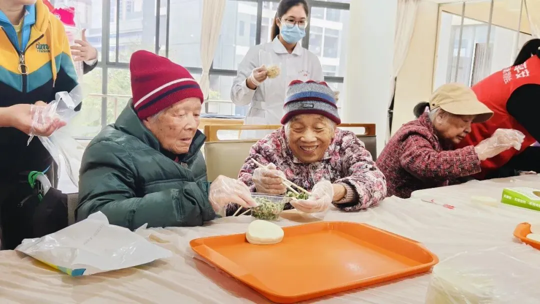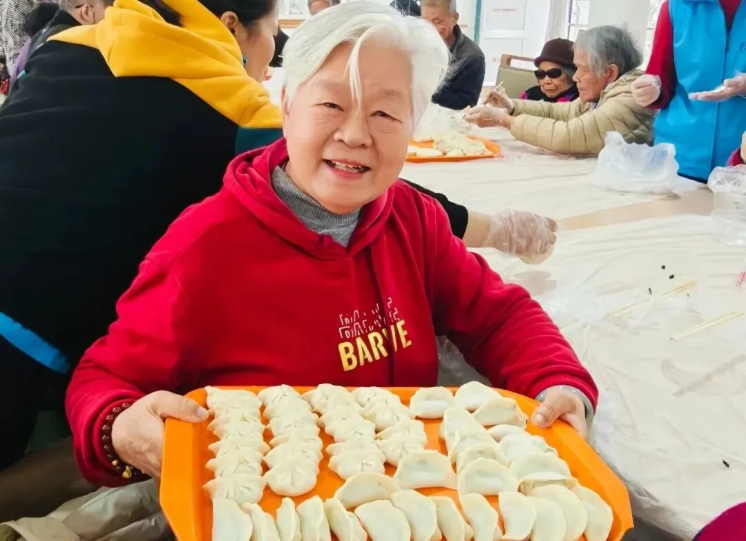 知识环节结束后,温馨的年味扑面而来。长者们与志愿者们围坐在一起,开始包饺子活动。陈奶奶熟练地捏着饺子褶,笑着分享:“过去在老家,过年包饺子最热闹了。”大家手上忙碌,嘴边谈笑,活动室里洋溢着家的温暖。当热气腾腾的饺子出锅,品尝着共同的劳动成果,满足与幸福写在每个人的脸上。