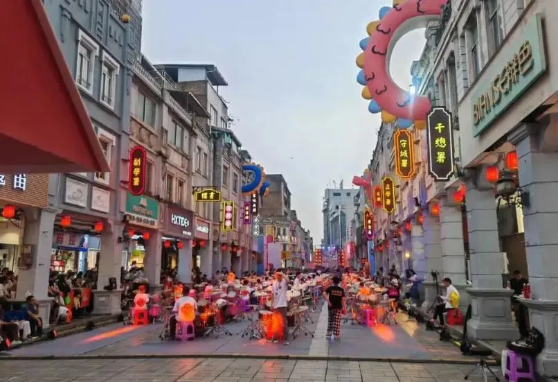 街上人声鼎沸,路边小吃摊主吆喝声此起彼伏,“来尝尝新鲜卤味,辣得过瘾!”空气中弥漫着烤猪蹄、香辣小吃的味道,热乎乎的像蒸笼一样。