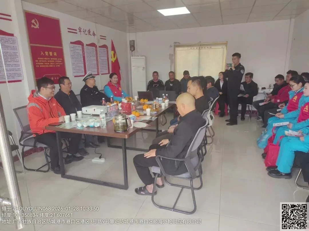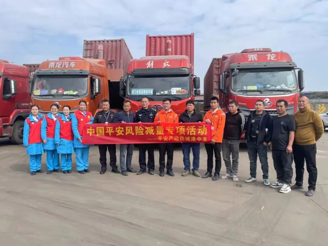 为确保春运期间道路交通安全,2026年1月28日平安产险防城港中支联合防城港市公安局交通管理支队高速公路管理一大队、广西交通局综合执法局第九支队第五大队、广西新发展交通集团有限公司钦州高速公路运营公司深入辖区重点物流企业开展"平安春运一交通安全进企业"春运交通安全宣传活动。