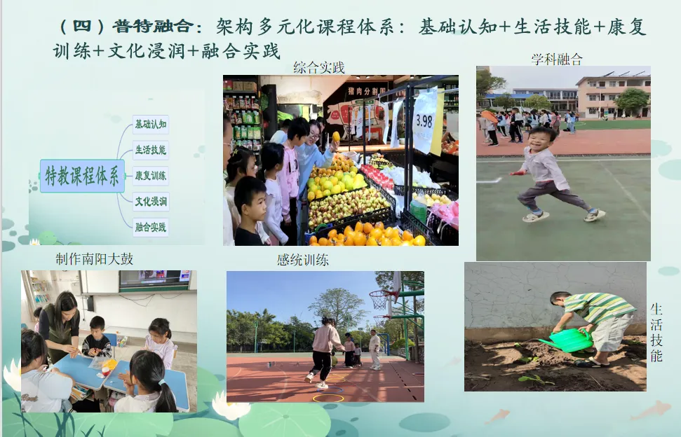 为推进教育公平、落实全纳教育要求,汤海英副校长主动担当、精准谋划,将普特融合教育纳入全镇教育工作重点布局,全程牵头南阳镇中心学校特教班的筹建工作,从办学规划、场地协调到课程设计、师资配备,逐项破解难题、督导落实,最终推动特教班于2025年3月正式成立,填补了全镇特教专项办学的空白;特教班成立后,汤副校长持续指导完善办学配套,牵头构建涵盖基础认知、生活技能、康复训练、文化浸润、融合实践的多元化课程体系,推动建立普特互通机制,让特殊学生在专业包容的环境中享有有质量、有温度的教育,切实保障每一位孩子的成长权益。