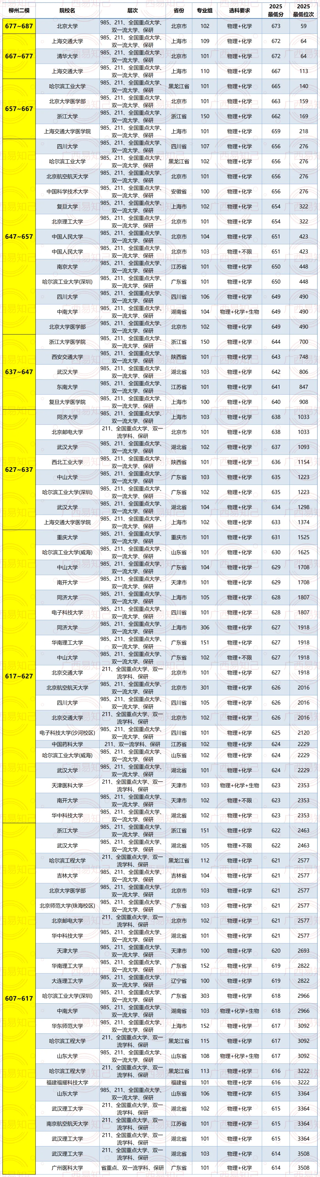 柳州二模【一分一档表】