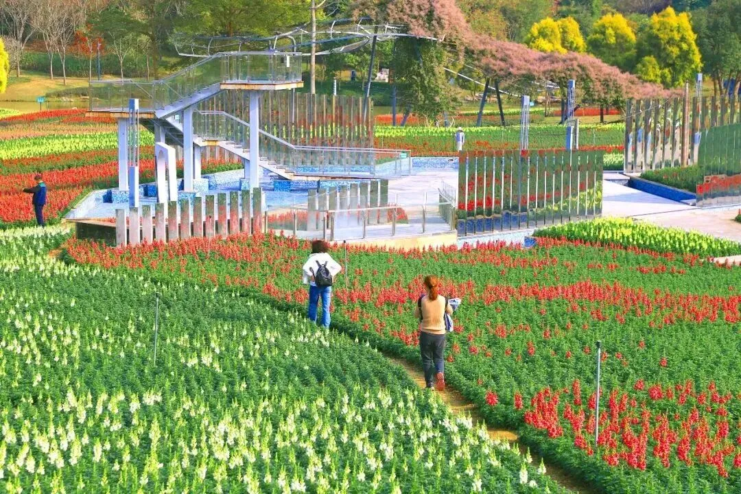 宛如一幅铺展在园内的彩色锦缎