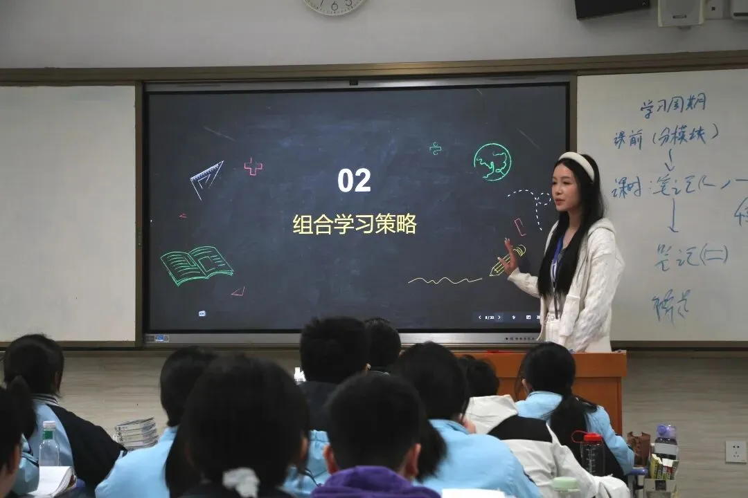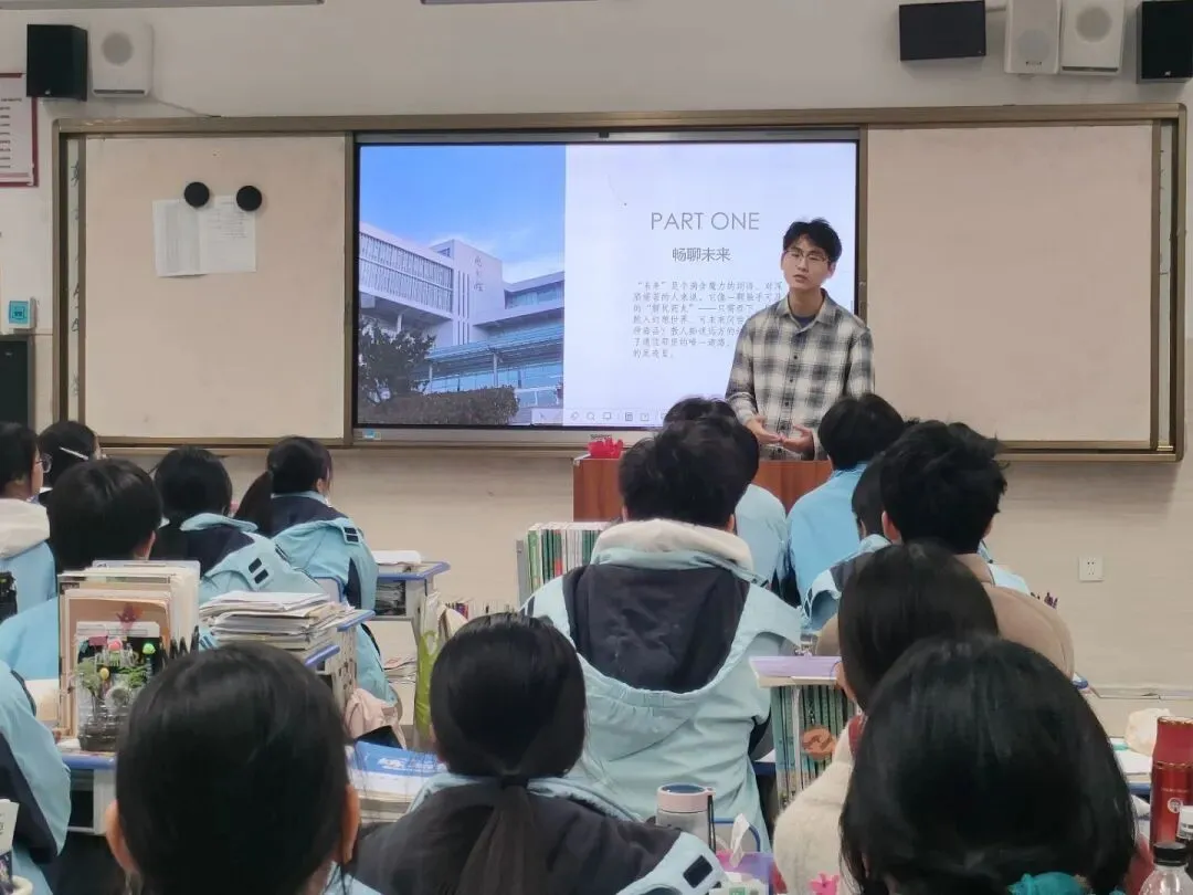 祝福环节后,学长学姐进班分享活动正式开启,成为本次活动的亮点。学校精准对接不同年级学情,各班主任提前对接学长学姐,做好前期筹备,确保分享贴合学情、高效务实。学长学姐们结合自身成长故事,毫无保留地分享学习方法、备考经验与生涯感悟,用亲身经历为在校学子点亮明灯,以榜样力量激发学习动力,让校友情谊在交流中愈发浓厚。