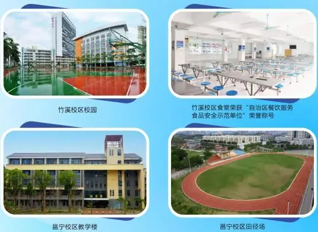 学校地址:竹溪校区: 南宁市青秀区竹溪大道28号。 邕宁校区: 南宁市邕宁区蒲庙镇清泉路66号。