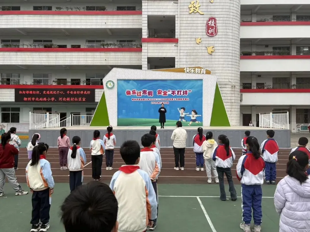 伴随着冬日微风,柳州市北站路小学于2026年1月30日上午8:30在学校操场隆重举行了“快乐过寒假,安全‘不打烊’”主题散学典礼,为一学期的校园生活画上圆满句号。