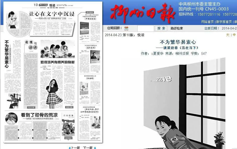 柳州日报2014年4月23日第10版:悦读《不为繁华易素心》