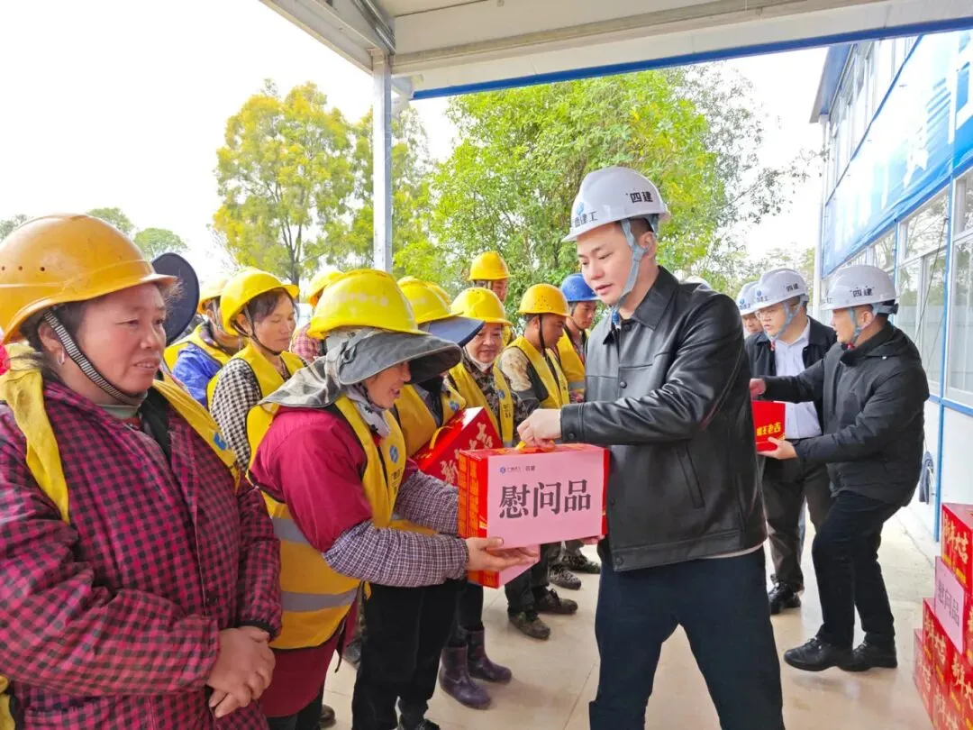 随后,项目开展春节“送温暖”慰问活动。伍转青与项目建设者亲切交谈,并送上新春祝福。他对项目全体人员坚守岗位、辛勤付出表示感谢,将慰问品送到大家手中,叮嘱大家在冬季施工中注意防寒保暖,科学安排作业时间,时刻绷紧安全之弦,做到高效施工、平安作业,喜迎新春佳节。