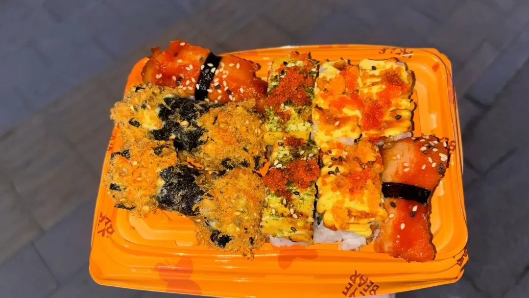 我进去还买了一份寿司吃27元,折上折的优惠活动,你进去工作人员会发一张商家合作券给到您,指定的门店消费有打折或者其它……