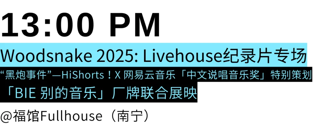 而接下来的四部 Woodsnake 2025 系列,把视线从个人转向了场地和城市,记录了“livehouse”作为一个记忆空间场所,如何储存着一座独特的城市里、一个时代的音乐记忆。北京篇回到 School Live Bar,这个始终为年轻乐队保留空间的小场地,见证着“北京现场还年轻”并不是一句口号,而是一种被反复验证的现实。上海育音堂的故事,让人看到“生活在现场”如何成为一种长期的实践——从地下演出到文化地标,音乐始终镶嵌在城市的日常里。