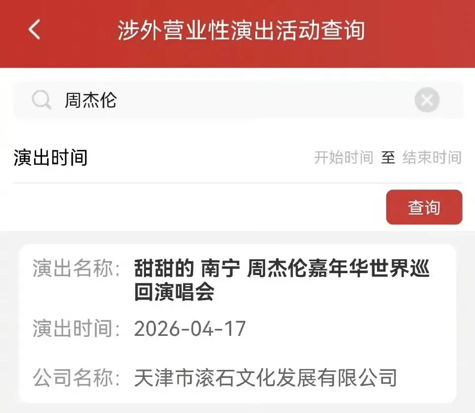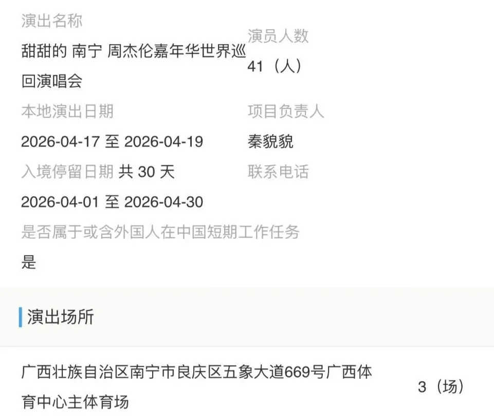 >审批通过!周杰伦「甜甜的」南宁演唱会批文公示!
